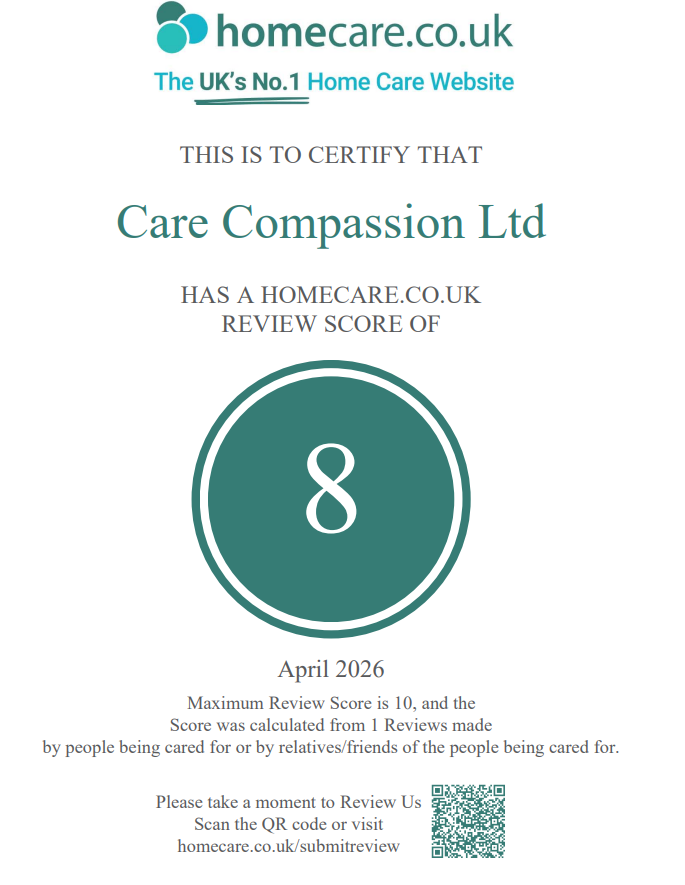 We are proud to announce that Care Compassion Ltd has achieved a review score of 8 out of 10 on Homecare.co.uk! This score reflects the quality of care and dedication our team provides to every client. Homecare.co.uk is one of the UK’s leading home care review sites, and this rating is based on genuine feedback […]